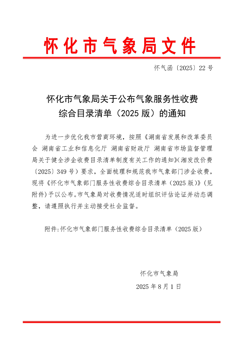 懷化市氣象局關(guān)于公布氣象服務(wù)性收費綜合目錄清單(2025版)的通知