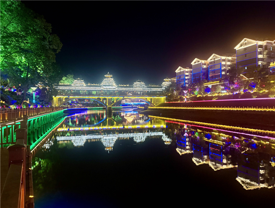 每當(dāng)夜幕降臨,游走在該縣城區(qū),夜景便在腳下鋪展開來,燈光與夜色相互交融,勾勒出侗鄉(xiāng)的輪廓,交織出充滿活力的新圖景,一幅震撼人心的畫面映入眼簾,每一盞燈都像是在訴說侗鄉(xiāng)的故事,侗家的熱情,或溫馨,或熱鬧,讓人不禁沉醉在這迷人的夜色之中。