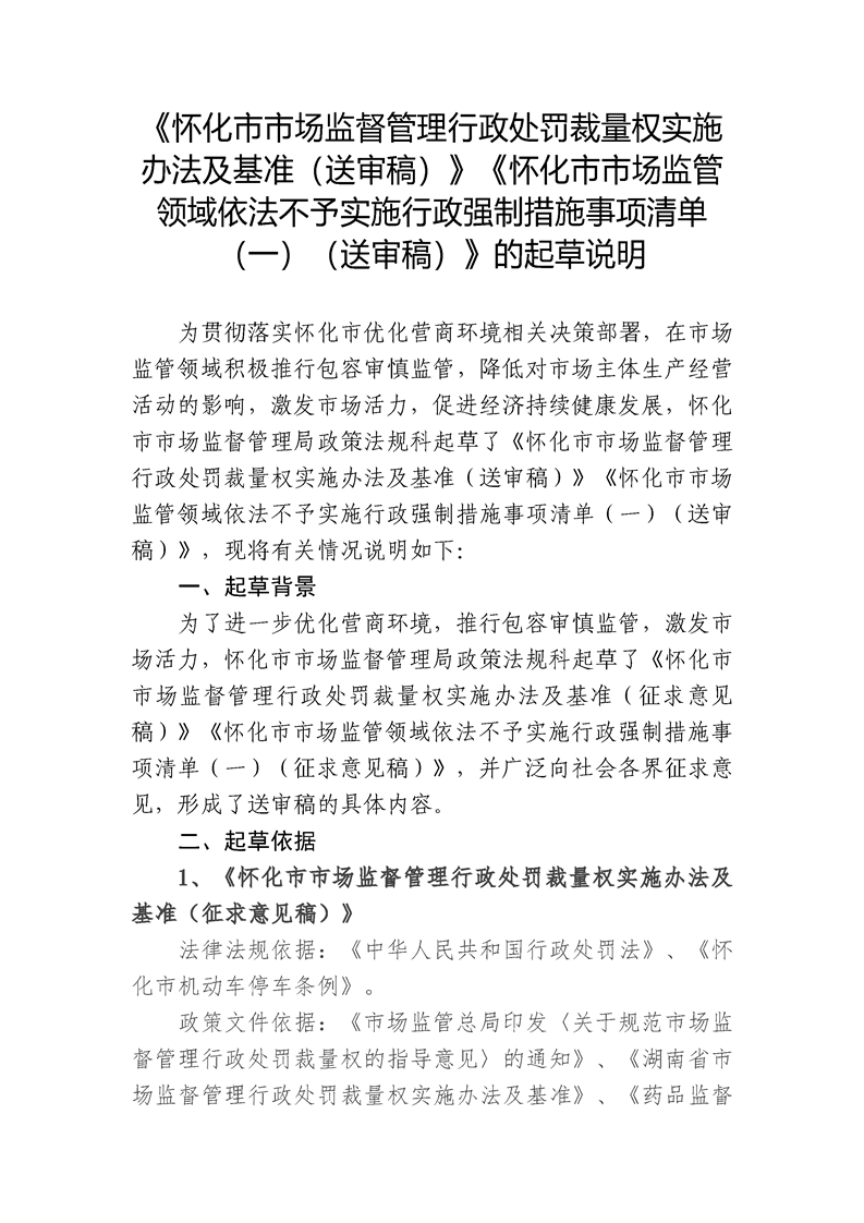 音頻解讀:《懷化市市場監(jiān)督管理行政處罰裁量權(quán)實(shí)施辦法及基準(zhǔn)(送審稿)》《懷化市市場監(jiān)管領(lǐng)域依法不予實(shí)施行政強(qiáng)制措施事項(xiàng)清單(一)(送審稿)》的起草說明
