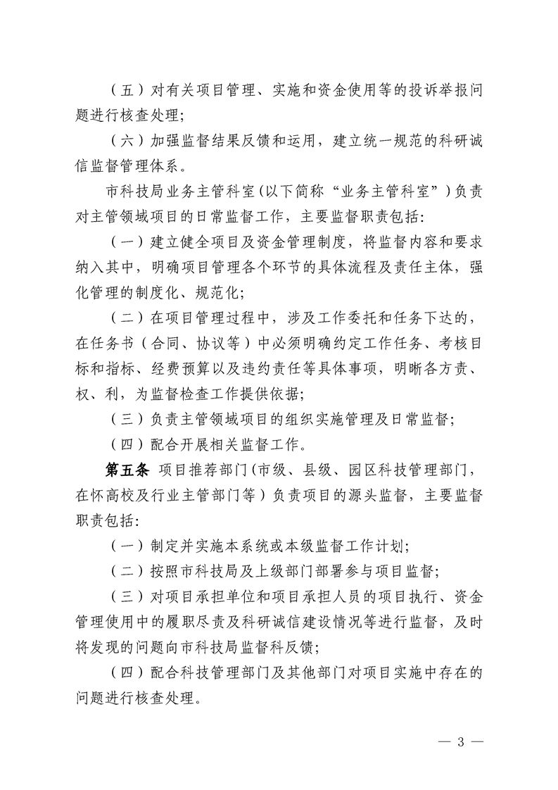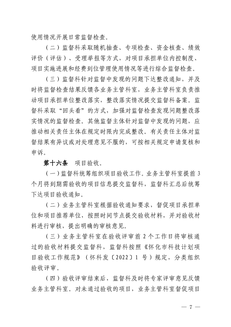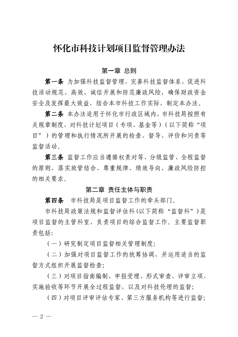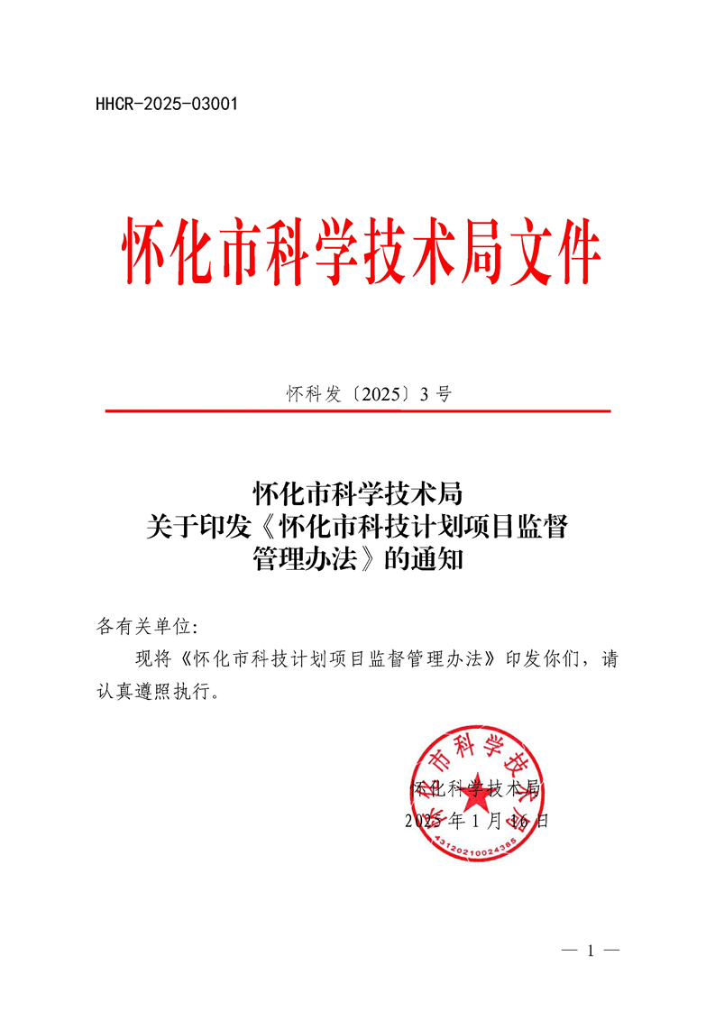 懷化市科學技術局關于印發(fā)《懷化市科技計劃項目監(jiān)督管理辦法》的通知