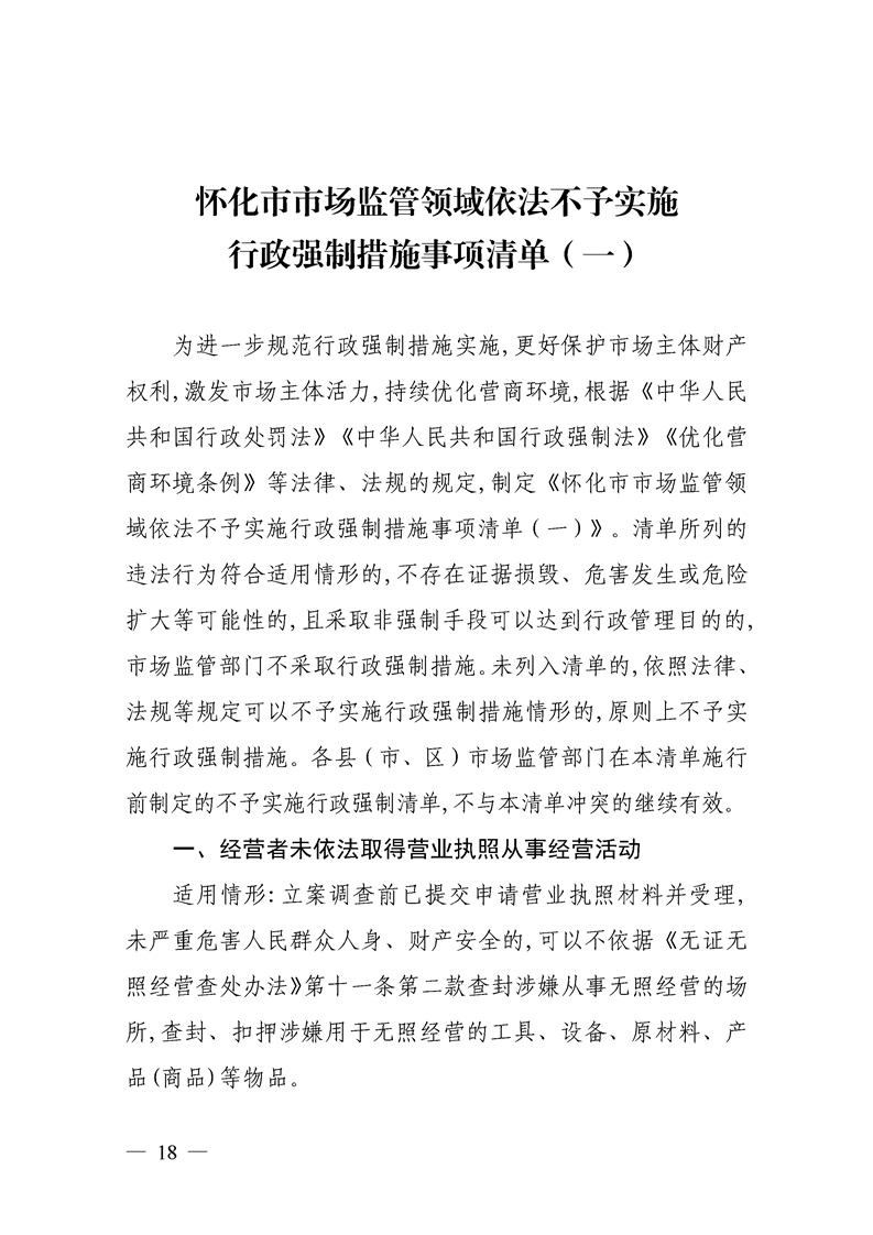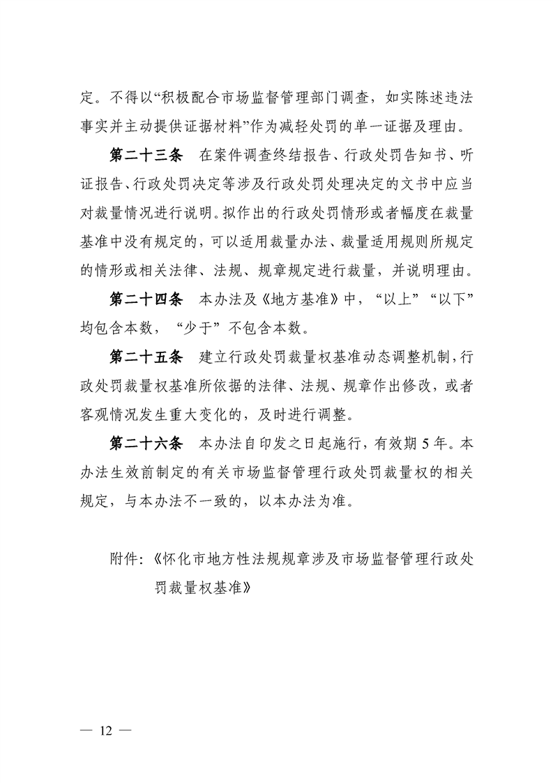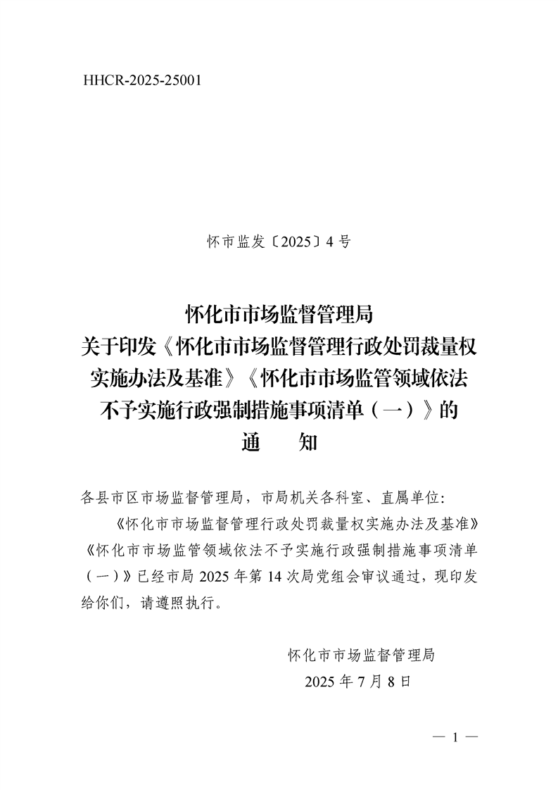 關(guān)于印發(fā)《懷化市市場(chǎng)監(jiān)督管理行政處罰裁量權(quán)實(shí)施辦法及基準(zhǔn)》《懷化市市場(chǎng)監(jiān)管領(lǐng)域依法不予實(shí)施行政強(qiáng)制措施事項(xiàng)清單(一)》的通知